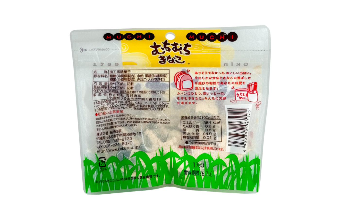 沖縄県産さとうきびの黒糖に、たっぷりの香ばしいきなこをまぶした、やわらか食感の黒糖菓子です。
