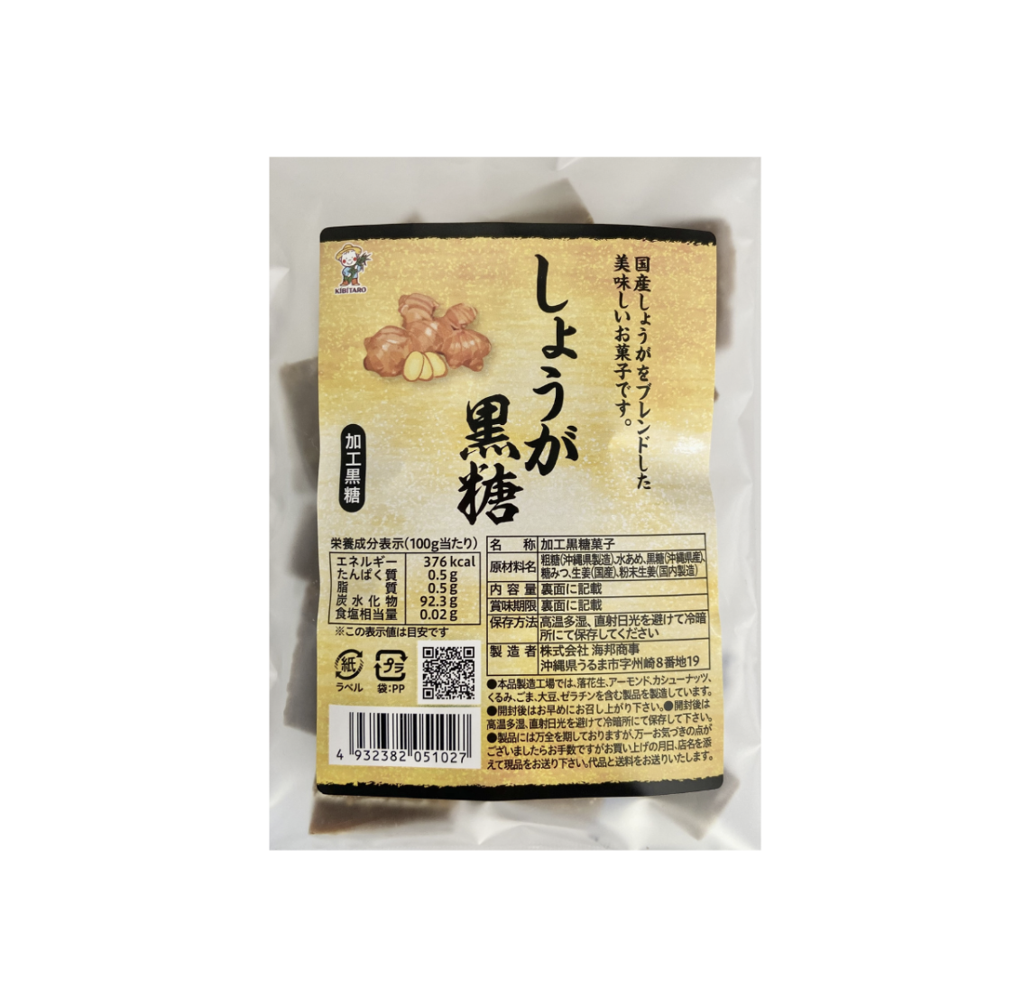 沖縄県産さとうきびの黒糖に、爽やかな辛みが特徴のしょうがを加えた、体にやさしい黒糖菓子です。