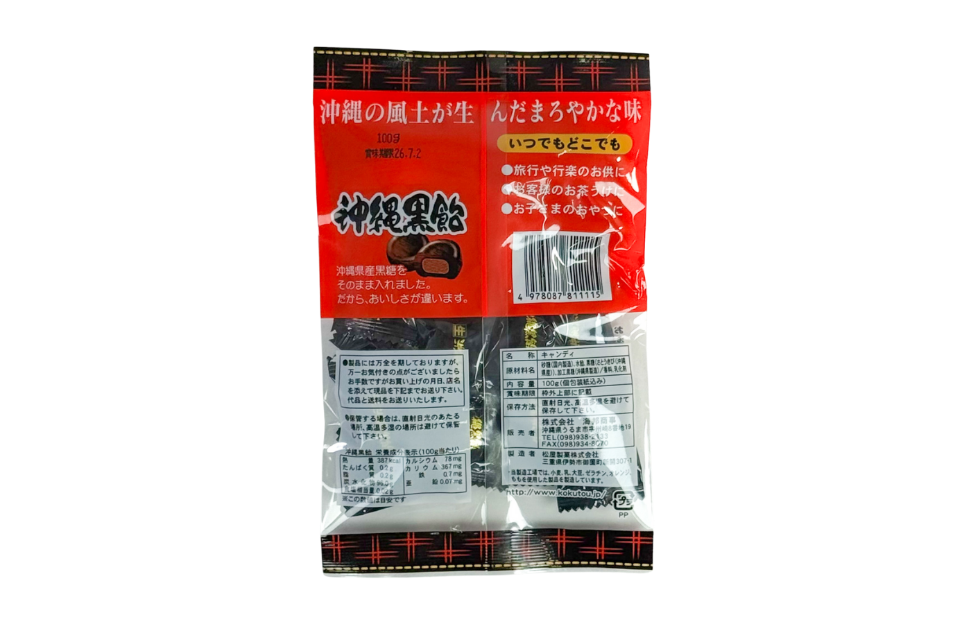 砂糖(沖縄県産)、水飴、黒糖(さとうきび(沖縄県産))、加工黒糖(沖縄県製造)/香料、乳化剤